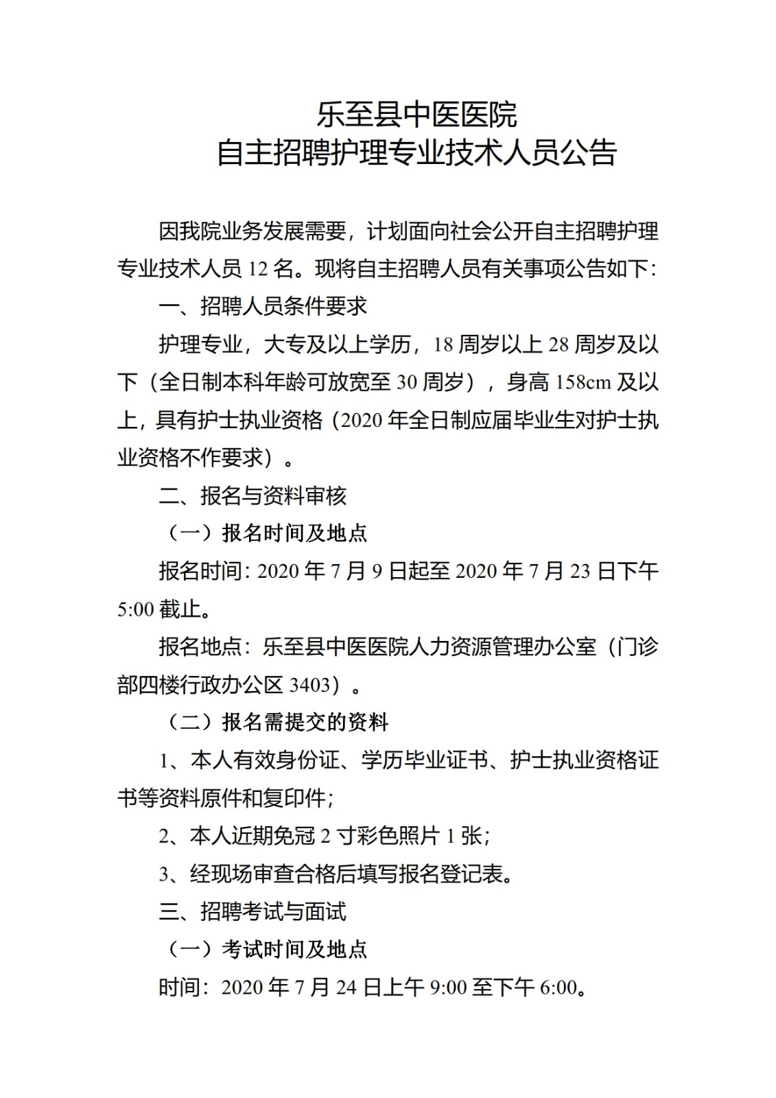 乐至县中医医院2020年自主招聘卫生专业技术人员公告