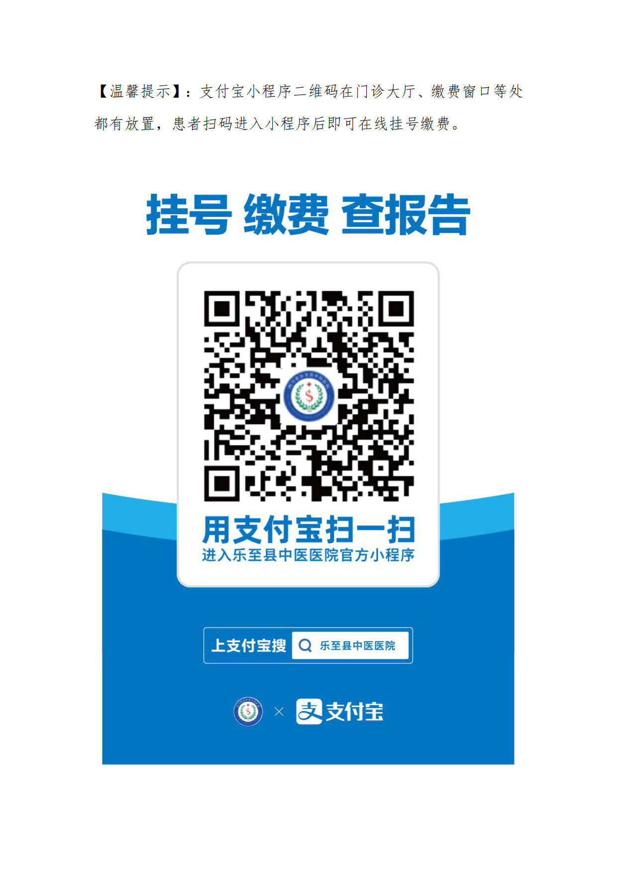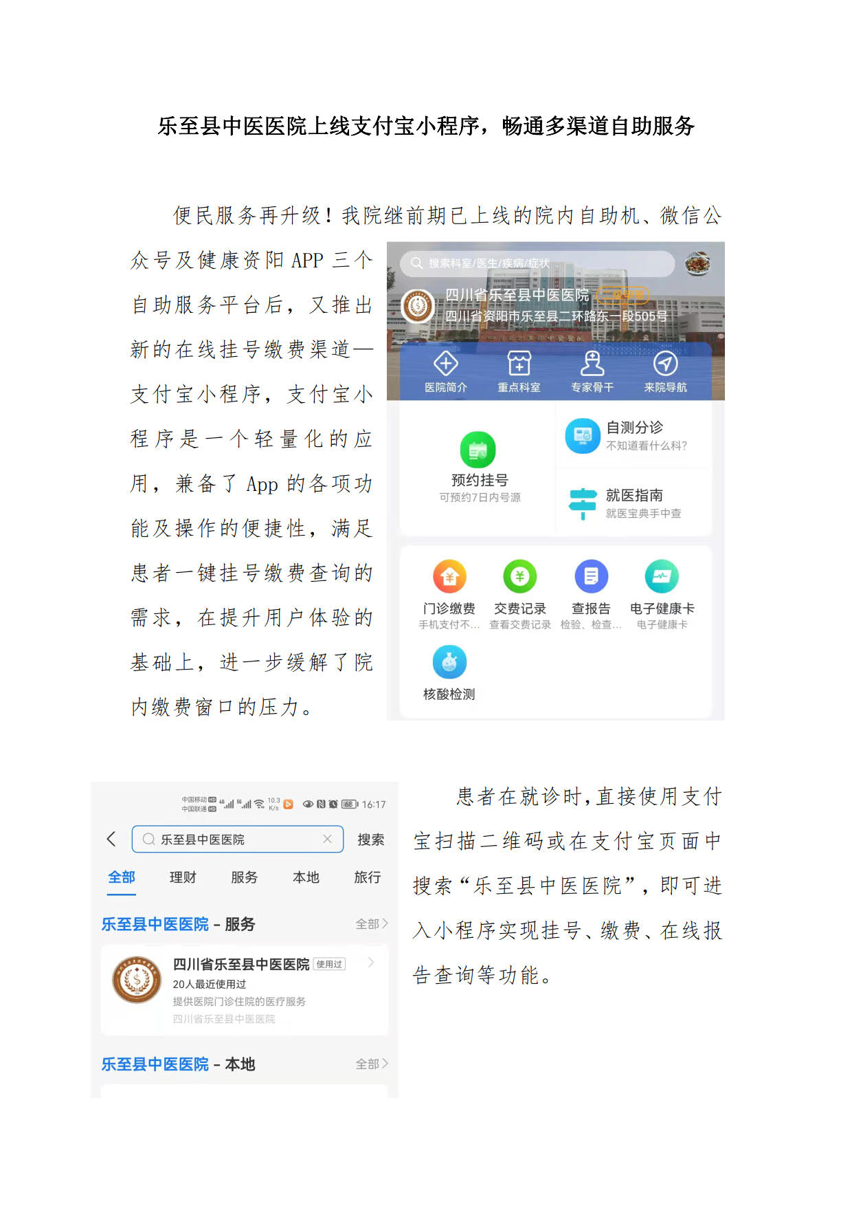 乐至县中医医院上线支付宝小程序,畅通多渠道自助服务!